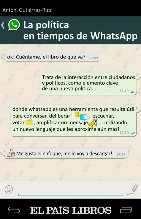 Y se publican estudios en los que, entre otras cuestiones, se plantea su uso como herramienta política en la más popular plataforma de mensajería, como este libro reciente de Antonio Gutiérrez-Rubí, que recomiendo.