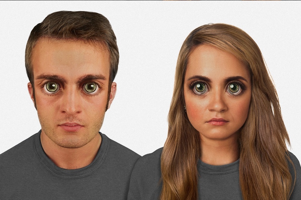 - Ojos rojos y desconcertantemente grandes. Según el Dr. Alan Kwan, experto en genómica computacional, esto se deberá a mutaciones genéticas derivadas de vivir en planetas más alejados del sol. Ya existe una mutación llamada tetracromía que permite ver 100 veces más colores que los demás.
