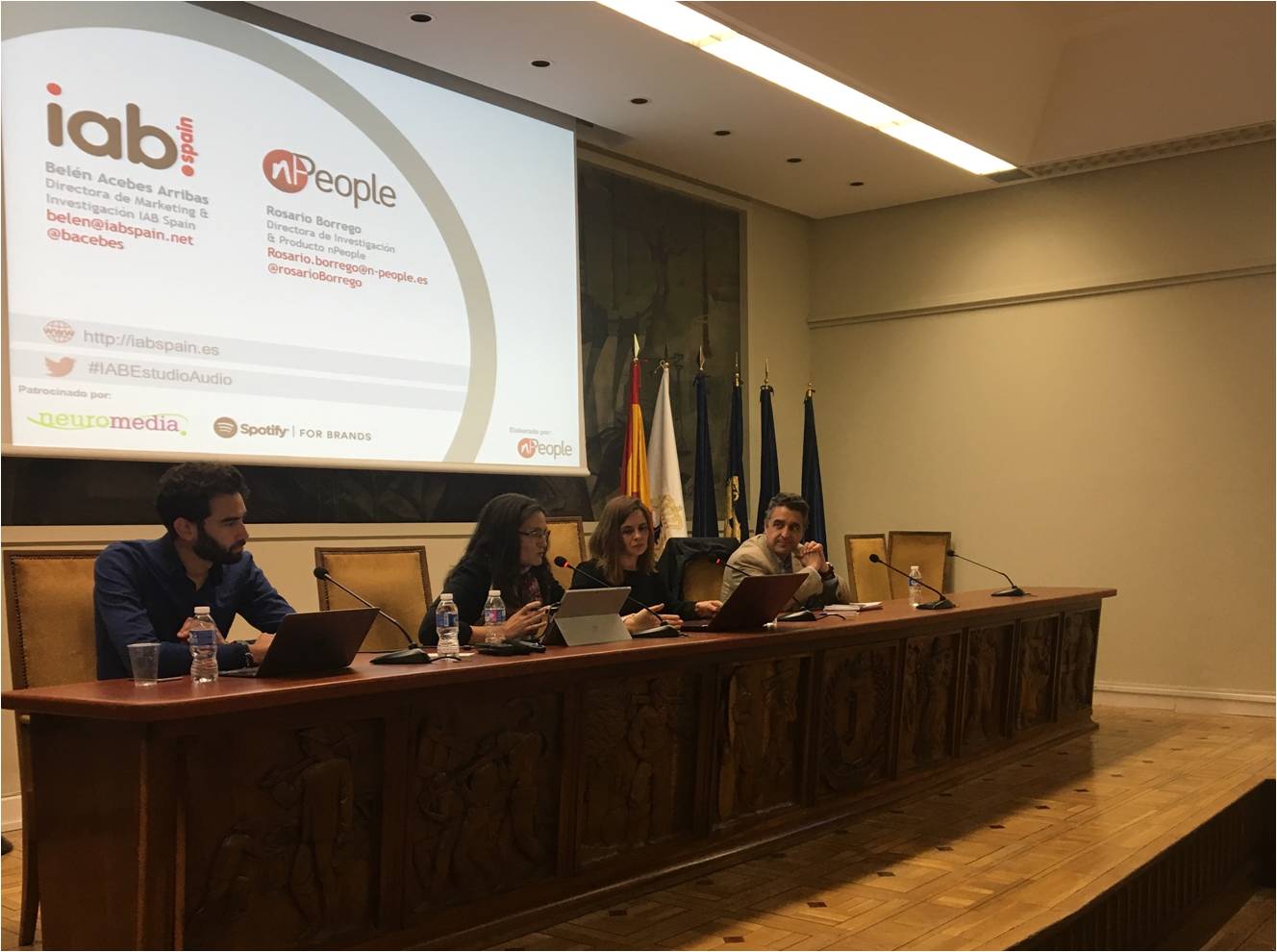 De izquierda a derecha, Juan Porcuna (Spotify), Belén Acebes (IAB Spain), Rosario Borrego (nPeople) y Antonio Traugott (IAB Spain).